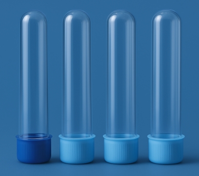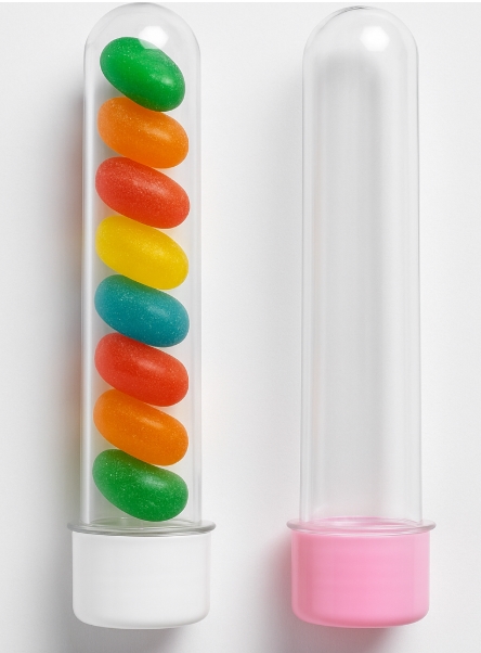 Surpreenda seus convidados com este tubete de 11 cm transparente com tampa colorida (rosa, azul claro ou azul escuro).